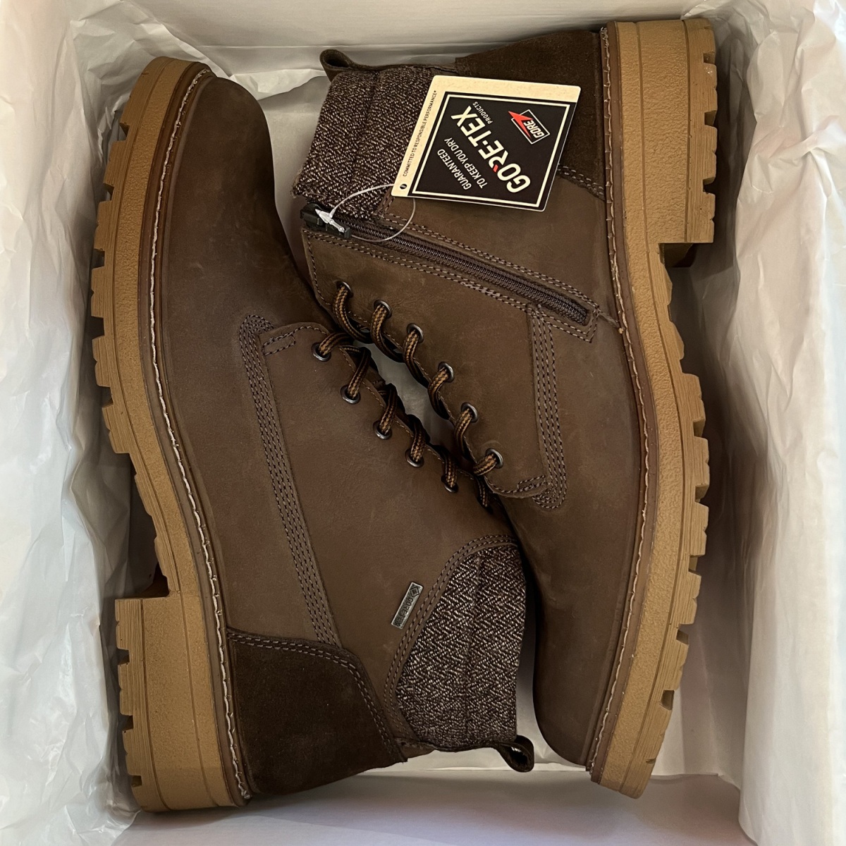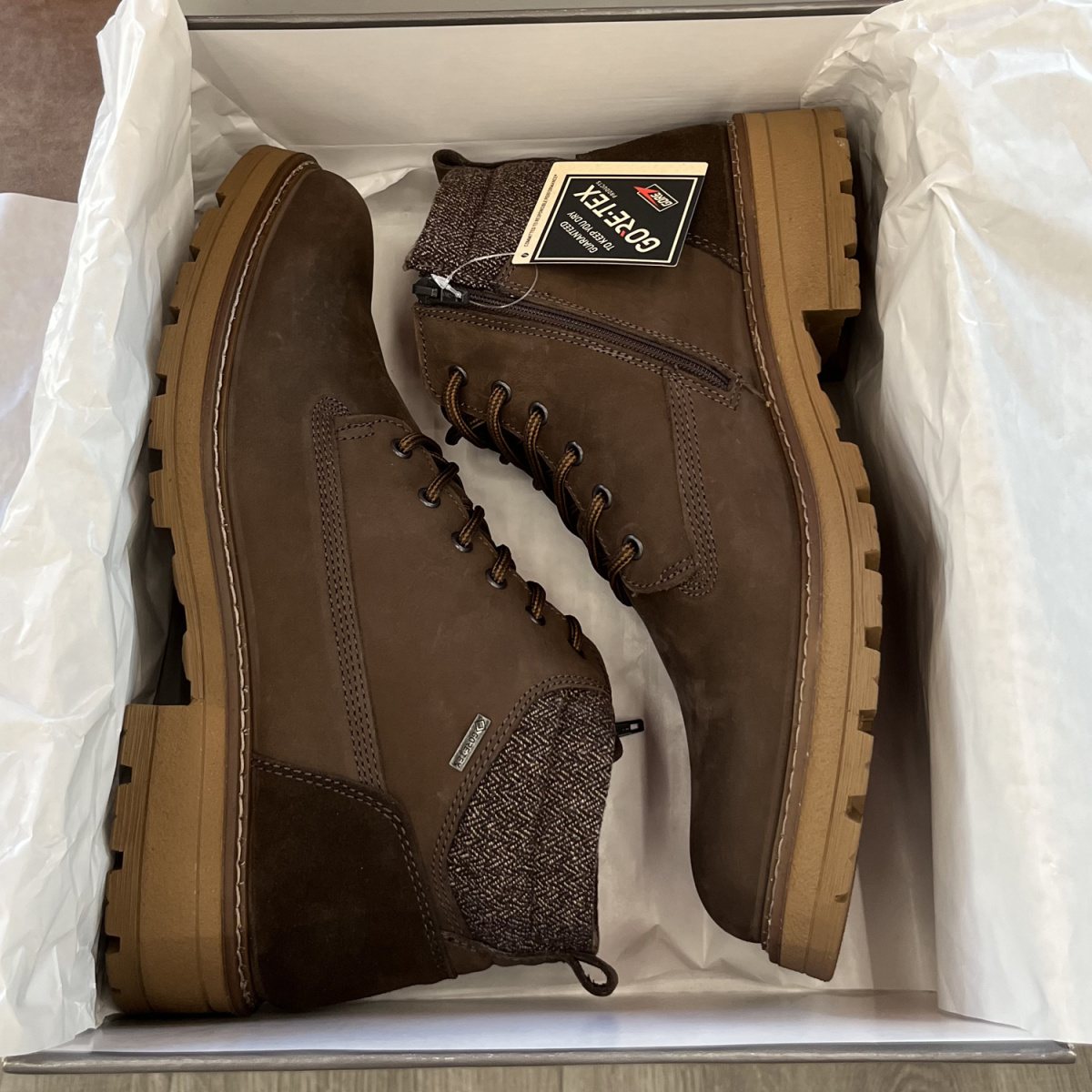 GORE-TEX — дышащая мембрана обеспечивает непромокаемость обуви. Обувь с технологией GORE-TEX создает отличный микроклимат для ваших ног. Водонепроницаемая, дышащая и чрезвычайно надежная мембрана GORE-TEX размещается между верхом и подкладкой обуви и специально разработана для комфортной носки в любую погоду.