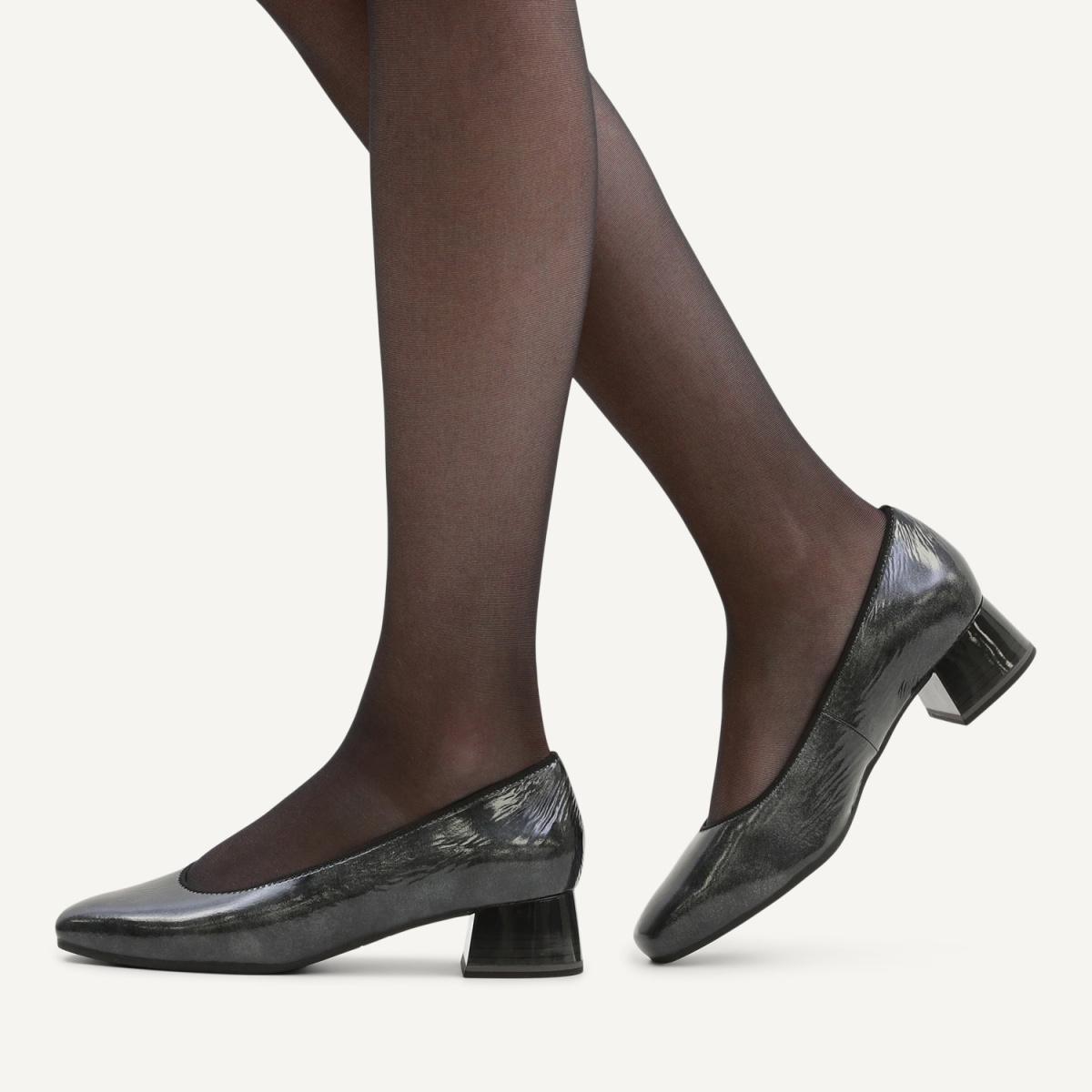 Разработанный компанией Caprice каблук Antishokk смягчает ударную нагрузку при ходьбе более чем на 50%, это в свою очередь разгружает позвоночник и защищает суставы.